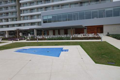 dahinter die Poolbar und darüber der Spa Bereich bzw. Sauna mit Liegen