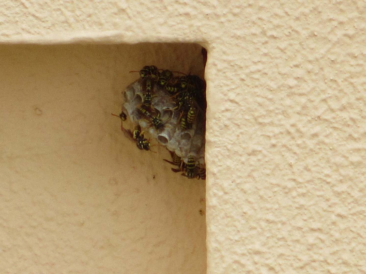 Wespennest am gegenüberliegenden Balkon