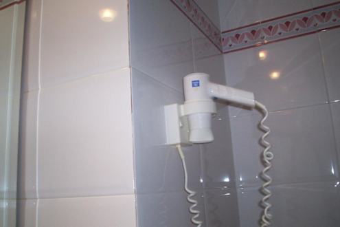Ein Ausschnitt aus dem Badezimmer, incl. Fön