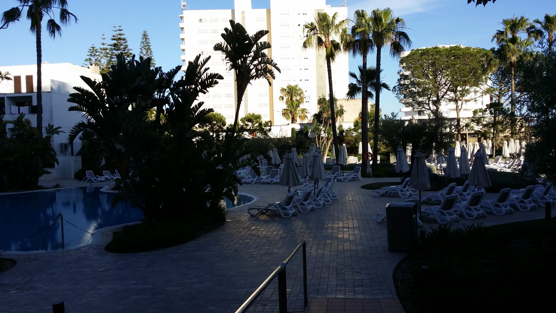 Poolanlage am Abend