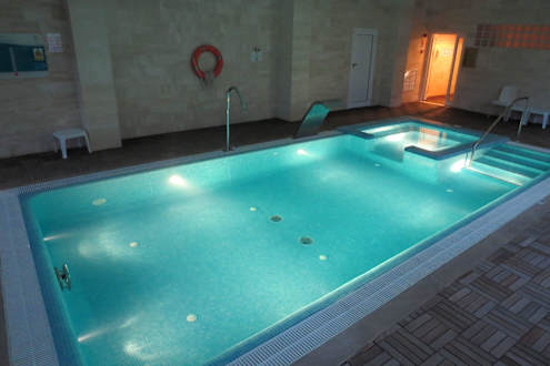 Schön beleuchteter Indoor PoolImmer schön leer, weil alle nur draussen sind! Und es werden keine Liegen reserviert :-)
