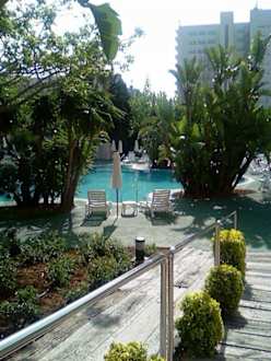 Aufnahme vom Ausgang zur Poolseite aus