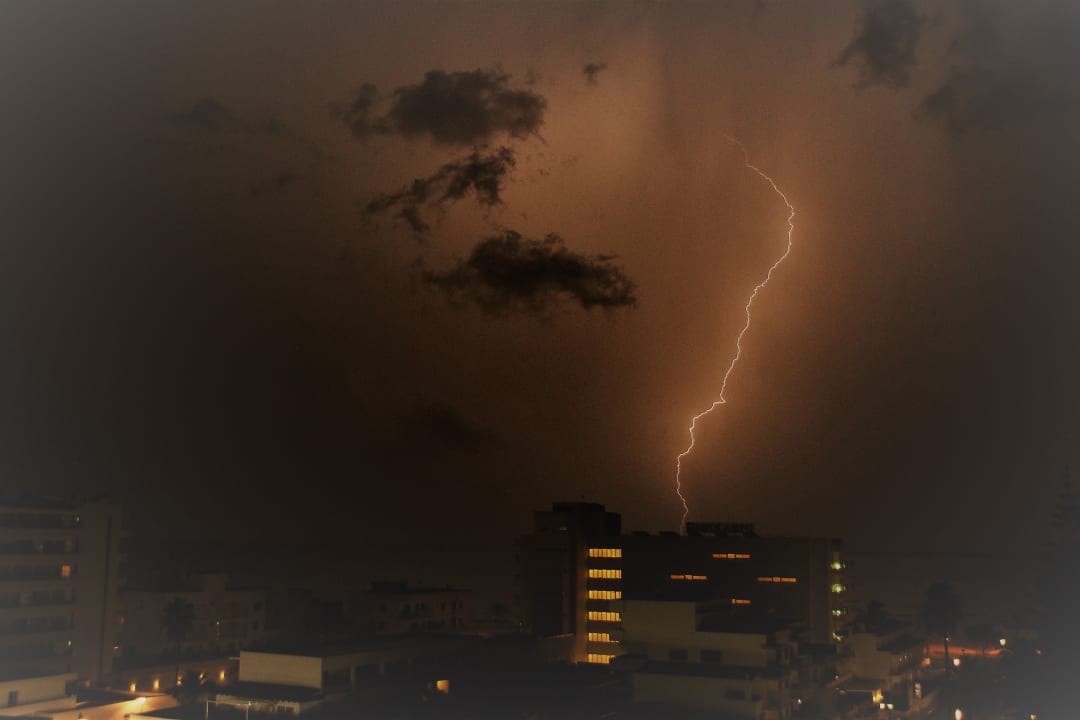 Blick vom Balkon auf das Meer am 09. Oktober 2018, als das schwere Unwetter tobte.