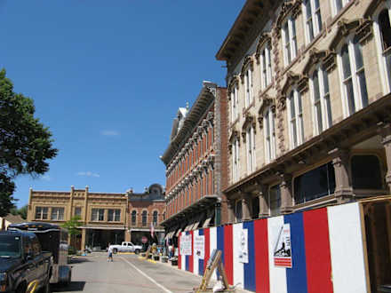 Das historische Plaza Hotel in Las Vegas, NMDas historische Plaza Hotel in Las Vegas, New Mexico (den Ort nicht verwechseln mit dem berühmten Namensvetter in Nevada!): das Hotel liegt - umgeben von anderen historischen Gebäuden - an der Plaza, wo zur Zeit meines Aufenthalts (Anfang Juli) die mehrtägige jährliche Fiesta stattfand.