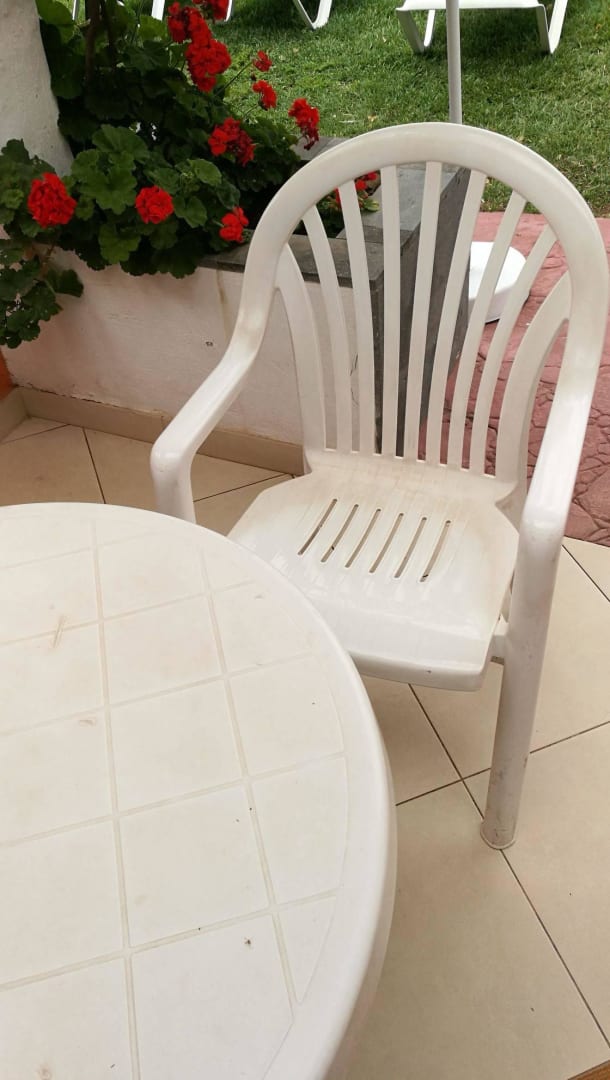 Bungalow 153, Terrassenmöbel, erneuerungsbedürftig