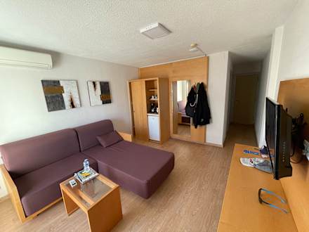 App. 515. Deckenleuchte taghell - ungemütlich, andere Lampe nicht vorhanden. Kühlschrank, Wasserkocher. Warum Kaffeemaschine ? wer kauft sich Kaffee und Filtertüten ? Kapselmaschine wäre angemessener.