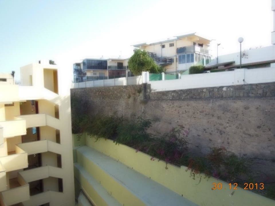 Blick zum Pool (siehe blaues Rechteck) und Rückwand