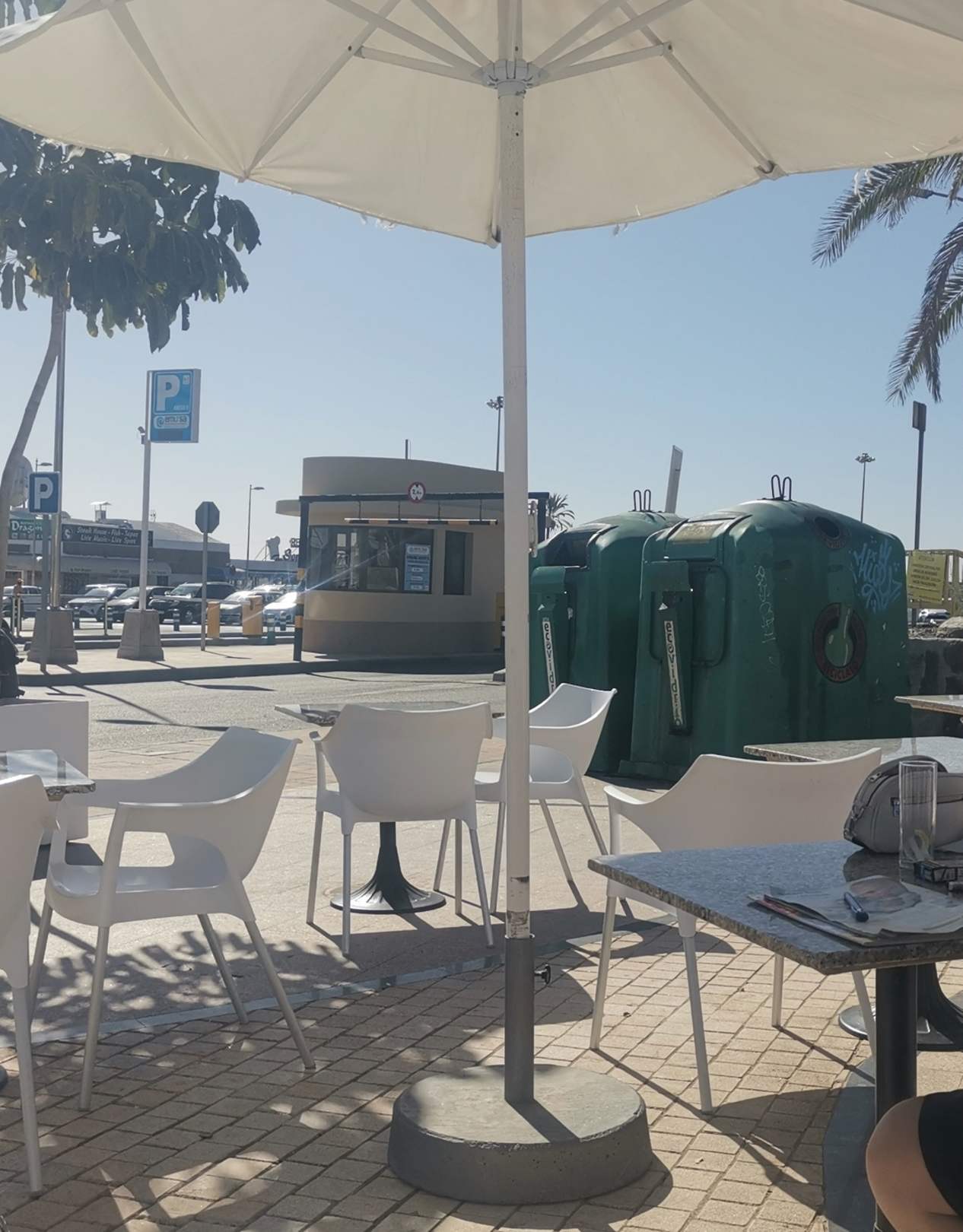 Glascontainer Direkt an den Tischen.