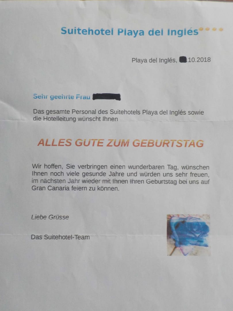 SonstigesIch habe mich sehr über eine Flasche Sekt, die ich zu meinem Geburtstag aufs Zimmer gestellt bekam, gefreut.