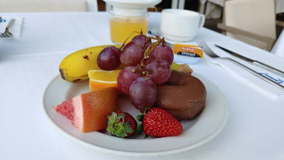 Obst (und fertige Donuts/Kuchen) zum Frühstück