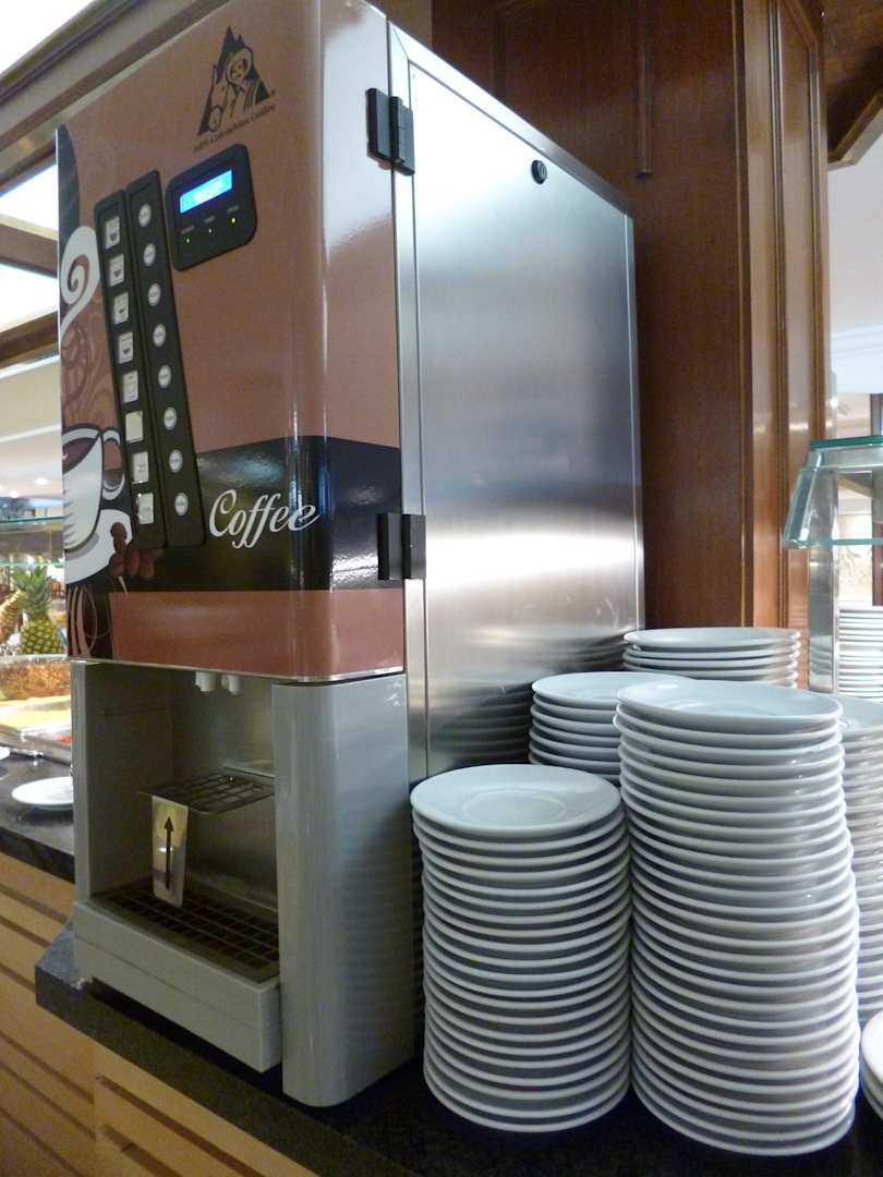 Getränkeautomat für unterschiedliche Kaffeesorten, die halbwegs genießbar waren, wenn man sie nicht zu stark an den heimischen Kaffeesorten gemessen hat.