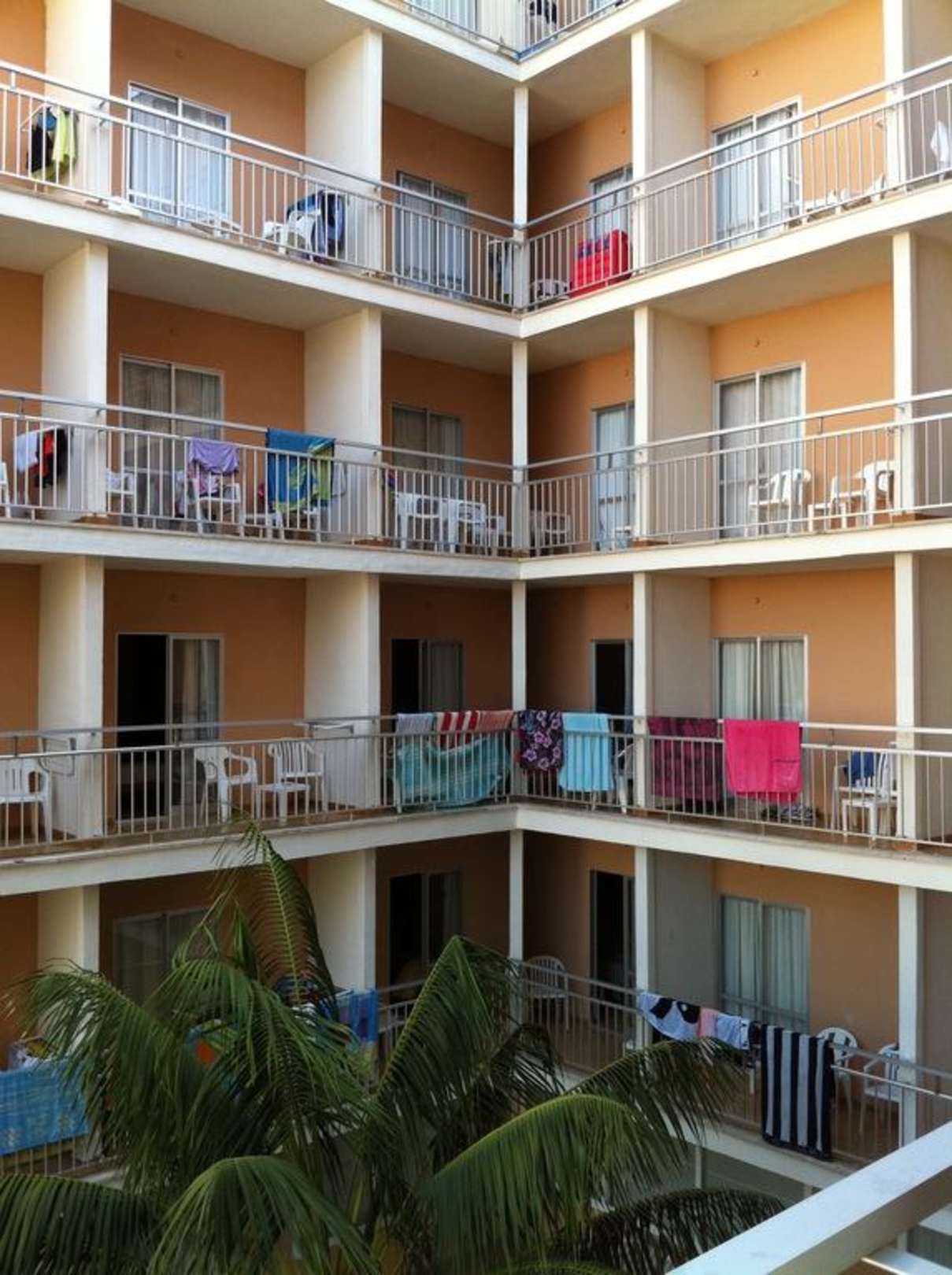 Balkonaussichtalle balkons nebeneinandergereiht,jeder erblickt jeden...
