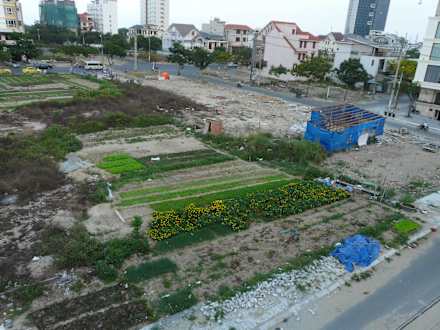 Der Blick aus dem FensterPlatz Räumen für den Bau eines neuen Hotels, aber die Leute kommen noch zu Ihren Gemüsegärten in Gang zu bringen