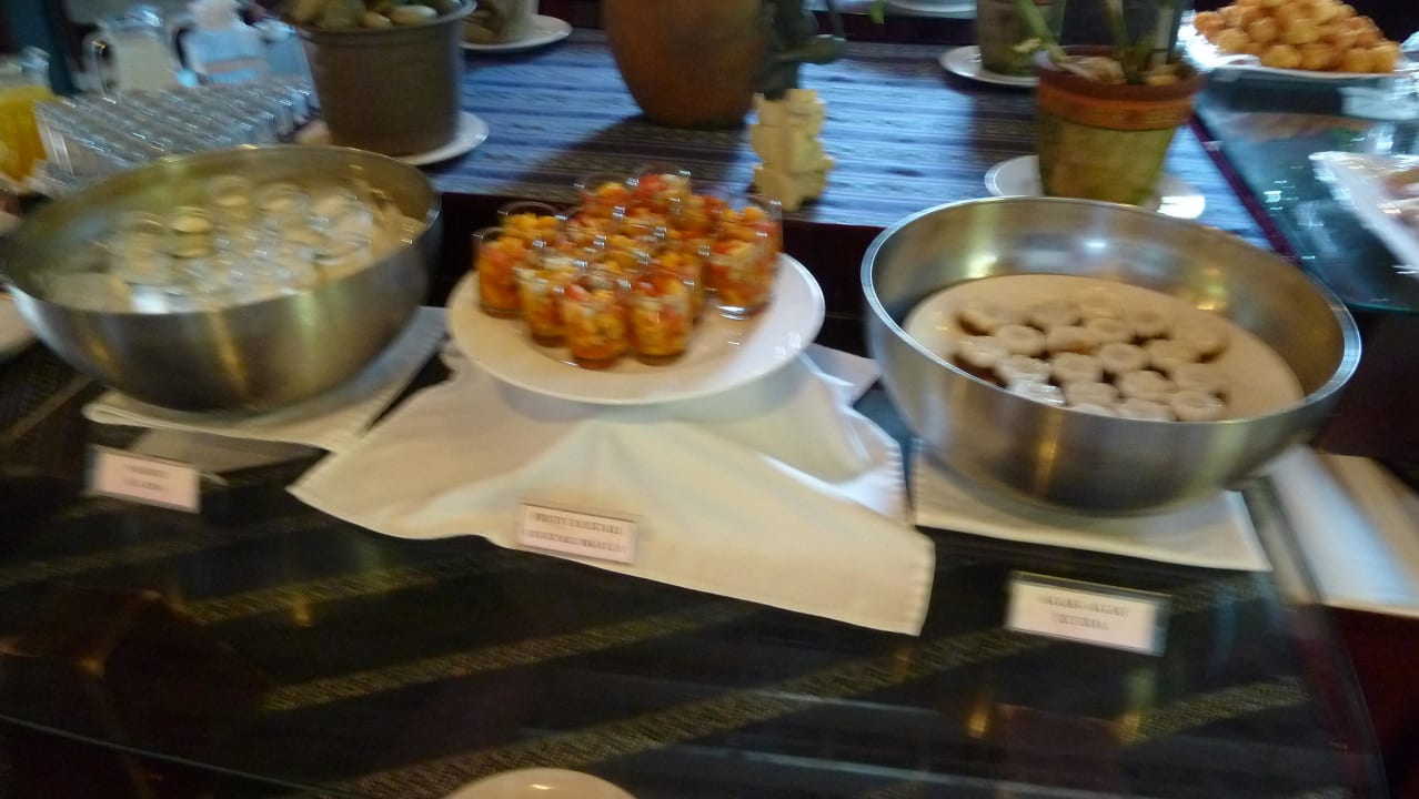 Das Frühstücksbüffetleckerer Joghurt mit verschiedenen Früchten liebevoll zubereitet