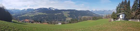 Der Hof Oberlaiming vom Berg aus
