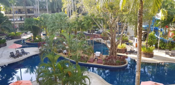 PoolIm Innenbereich viel Beton und relativ wenig grün. Da die Zimmer im hohen Gebäuden außen rum positioniert sind kommt die Sonne weniger durch.