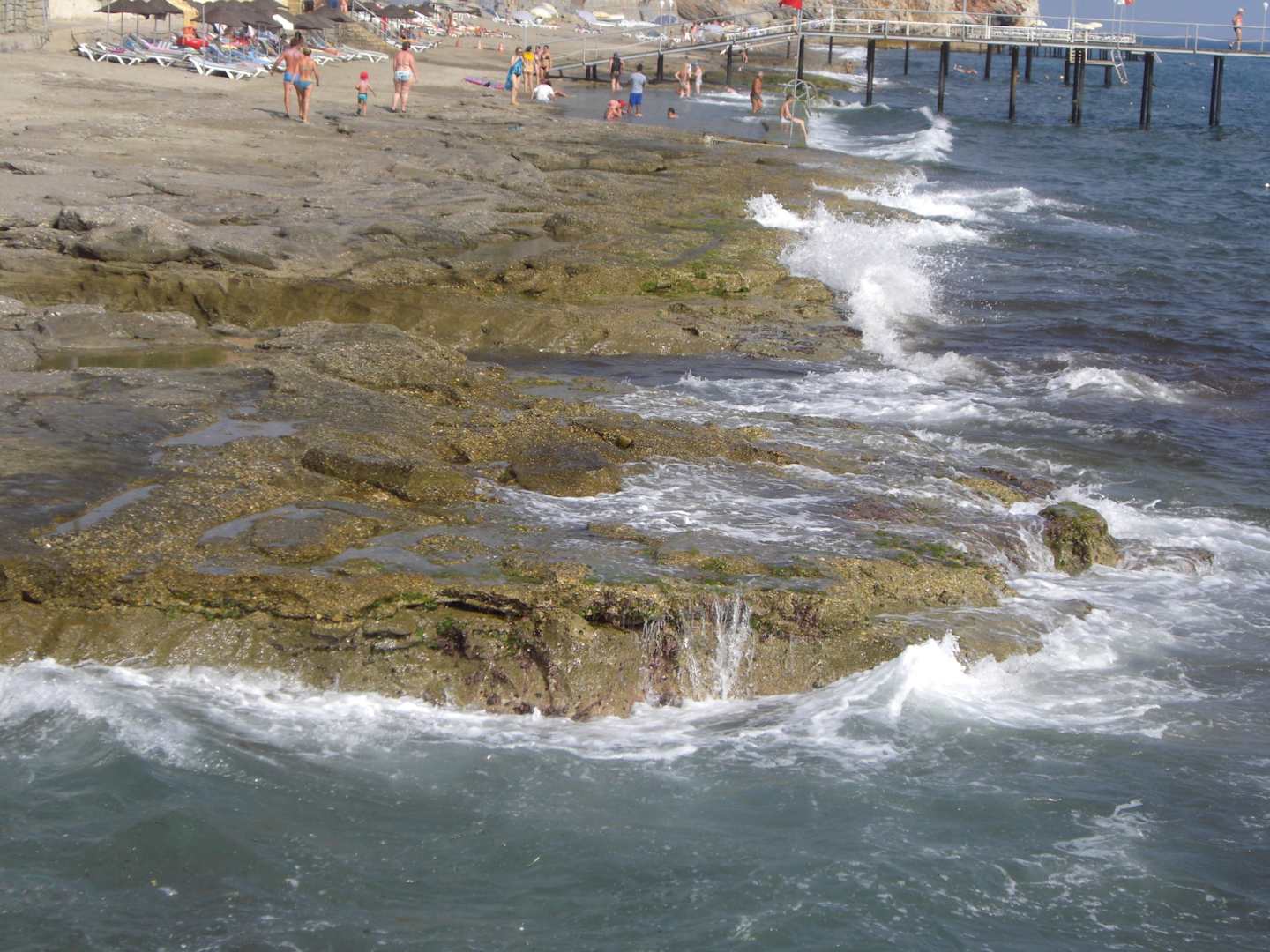 Strand mit Felsplatten