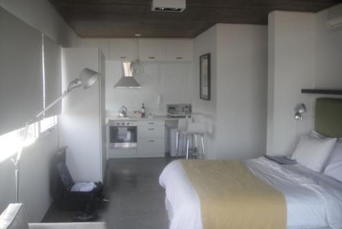 Zimmer 9DKüchenzeile von Zimmer 9D im 9. Stock mit Minibar, Backofen, Microwelle, Kaffeemaschine und Toaster