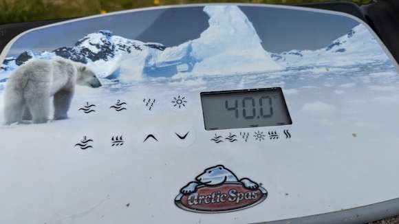 der Whirlpool im Garten hat angenehme 40 °C