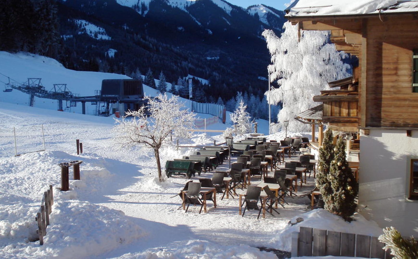 ... welch ein Ausblick von den Zimmern auf die winterliche Terasse bevor sie von sonnenhungrigen Besuchern belegt wird ...