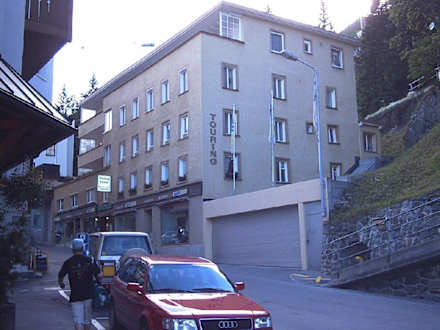 Hotel TouringDas Hotel Touring bergwärts aufgenommen. Im Restaurant im ersten Stock werden schmackhafte Gerichte serviert.
