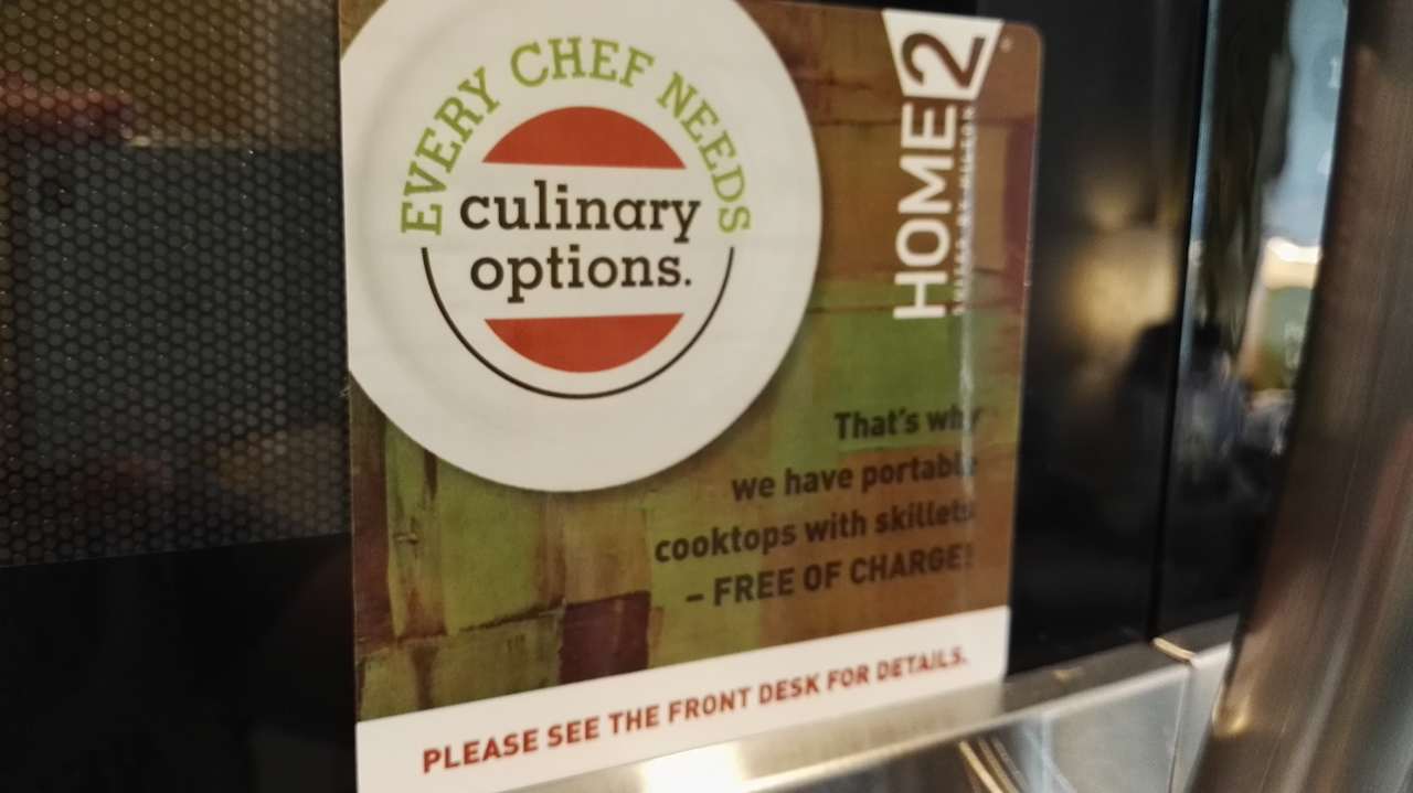 Hinweis an der Mikrowelle über die Möglichkeit der Kocher - Leihe