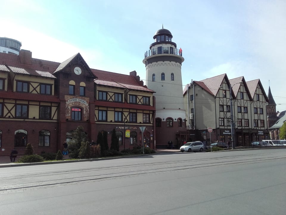 Hotel(drei Spitzdächer) von der Straße aus gesehen