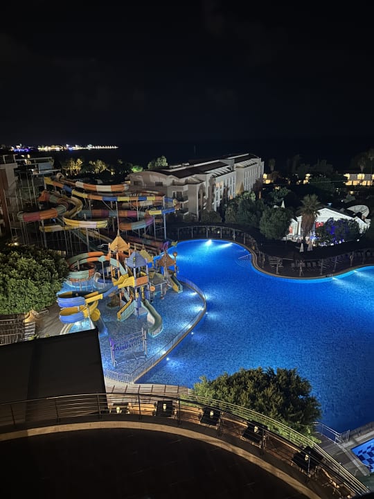 AusblickDas waren die Rutschen und der Pool, dahinter sieht man das linke neue Nebengebäude.