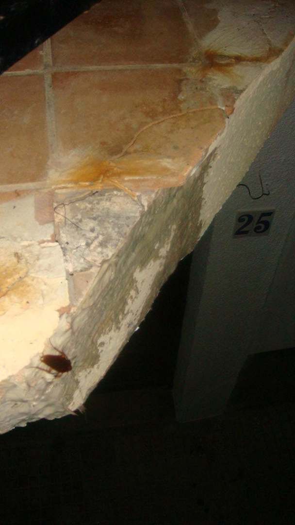 Die Kakerlake kam aus dem Badezimmer und ist auf den Balkon geflüchtet. Als ich das Ungeziefer fotografiert habe wurde ich noch vom Personal angepöbelt.