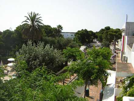 Blick aus dem Fenster Die Straße zwischen Hotel Mistral und dem gegenüber liegenden Hotel (mit dem Pool)