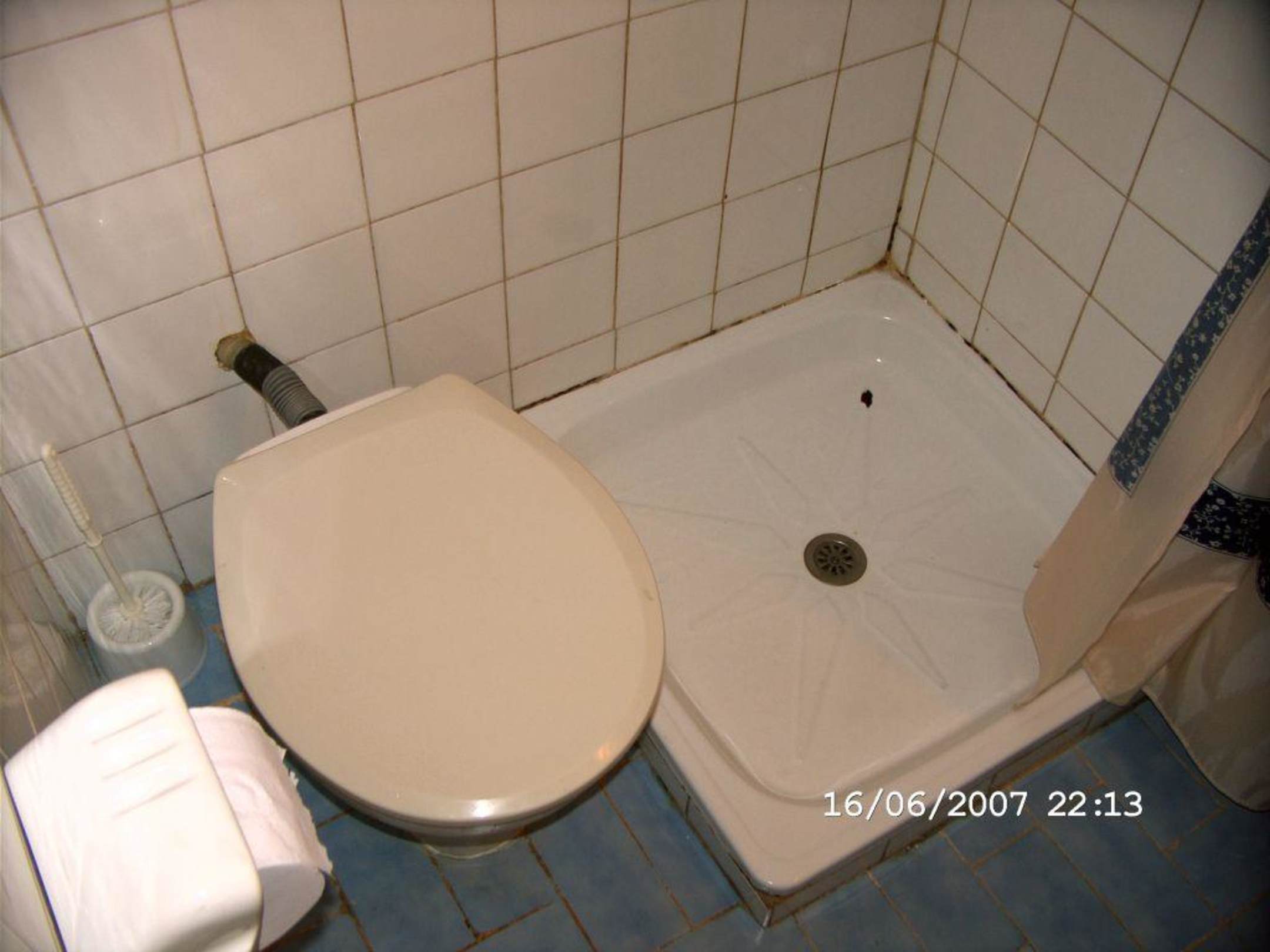 Bad & DuscheHier nun das Bad mit WC und Dusche - wenn man ein etwas größerer Mensch ist wird Duschen zur Herrausforderung :-)