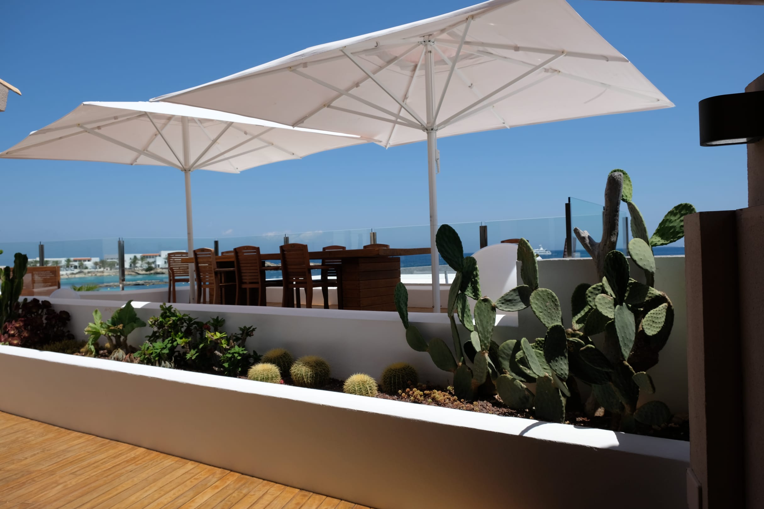 Hotellounge mit direktem Meerblick