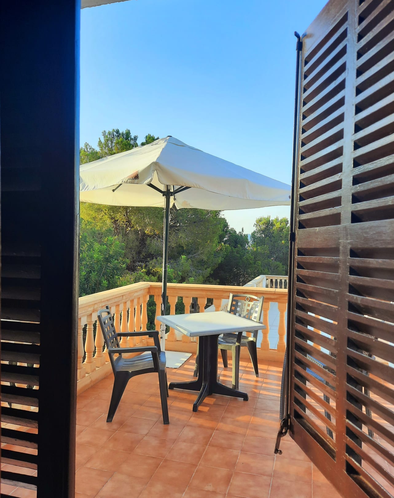 Blick vom Zimmer auf die Terrasse