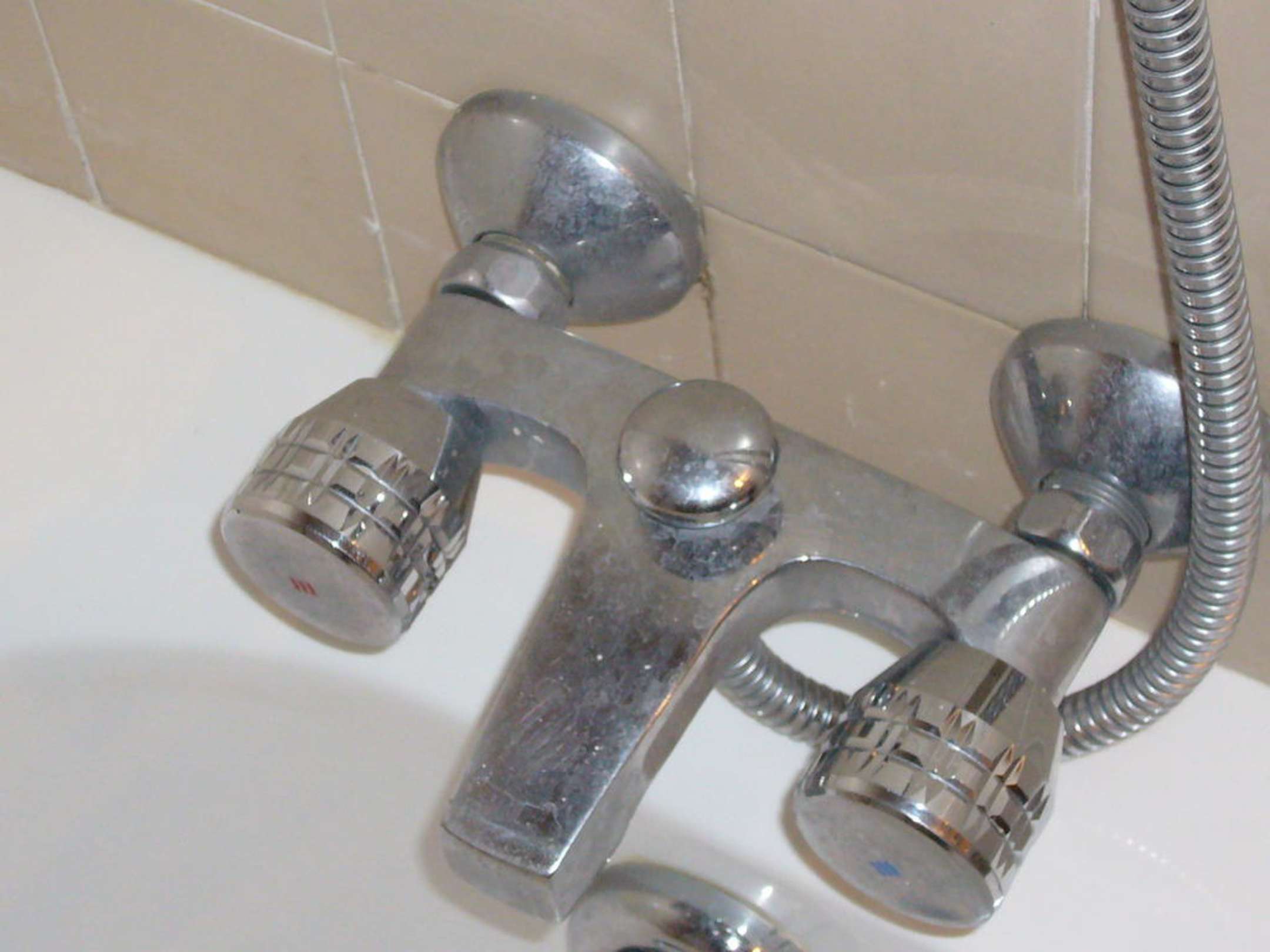 Armatur in der Duschwanne...verschmutzt mit starken Gbebrauchsspuren