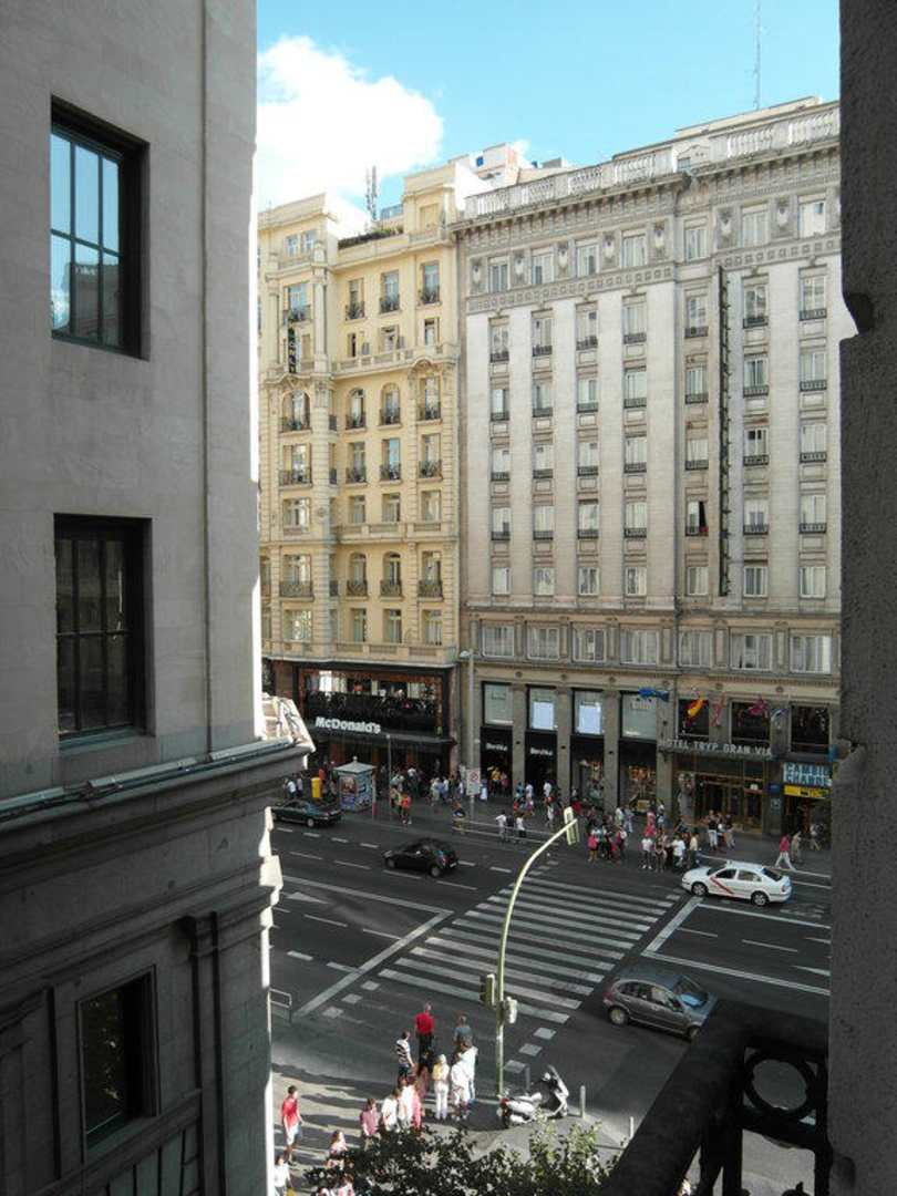 Ausblick auf die Straße die niemals schläft...Ausblick aus dem Fenster (Zimmer302) zur Gran Via, gleich links um die Hausecke ist die Metrostation...