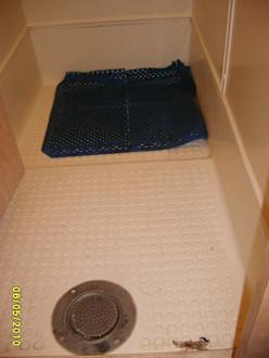 Duschenboden der FrauenduscheDie Duschen waren verdreckt, wurden aber nicht gesäubert.