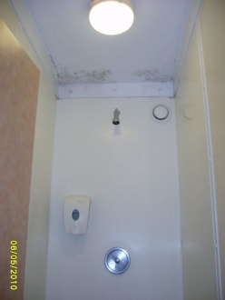 Schimmel in der FrauenduscheIn den Ecken der Duschen ist schwarzer Schimmel.