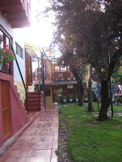 Blick vom Garten auf den östlichen Teil des Tika Wasi Hotels.