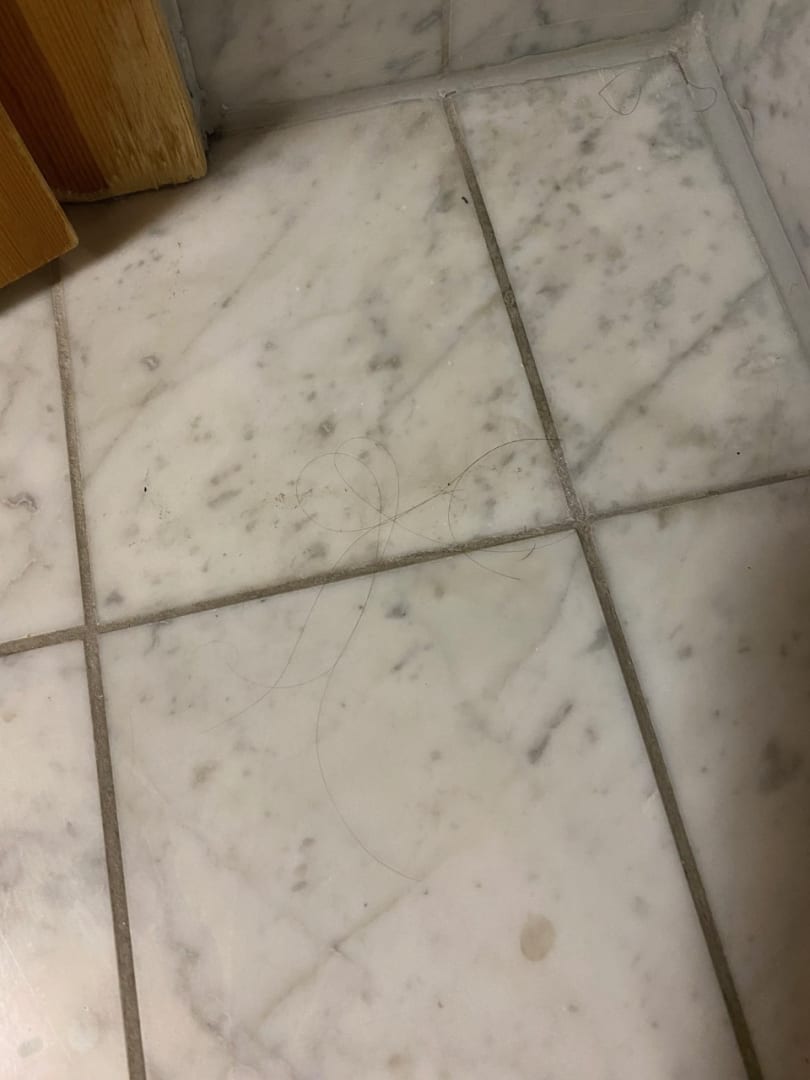 Fremde Haare am Boden beim Check-in (wir haben drei Mal Zimmer gewechselt und in allen Zimmern sah es so aus) Nach Reklamation wurde der Boden nochmals "gereinigt" - sah danach genau gleich aus.