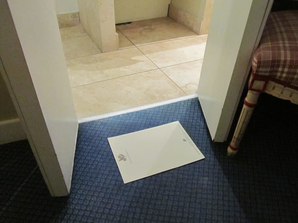 So geht es vom Zimmer ins Bad - nicht empfehlenswert für Klaustrophobiker und alle jene, deren Figur etwas mehr hergibt als das eines zarten Rehleins. Am Boden liegt, zur Relation, ein A4-Blatt.