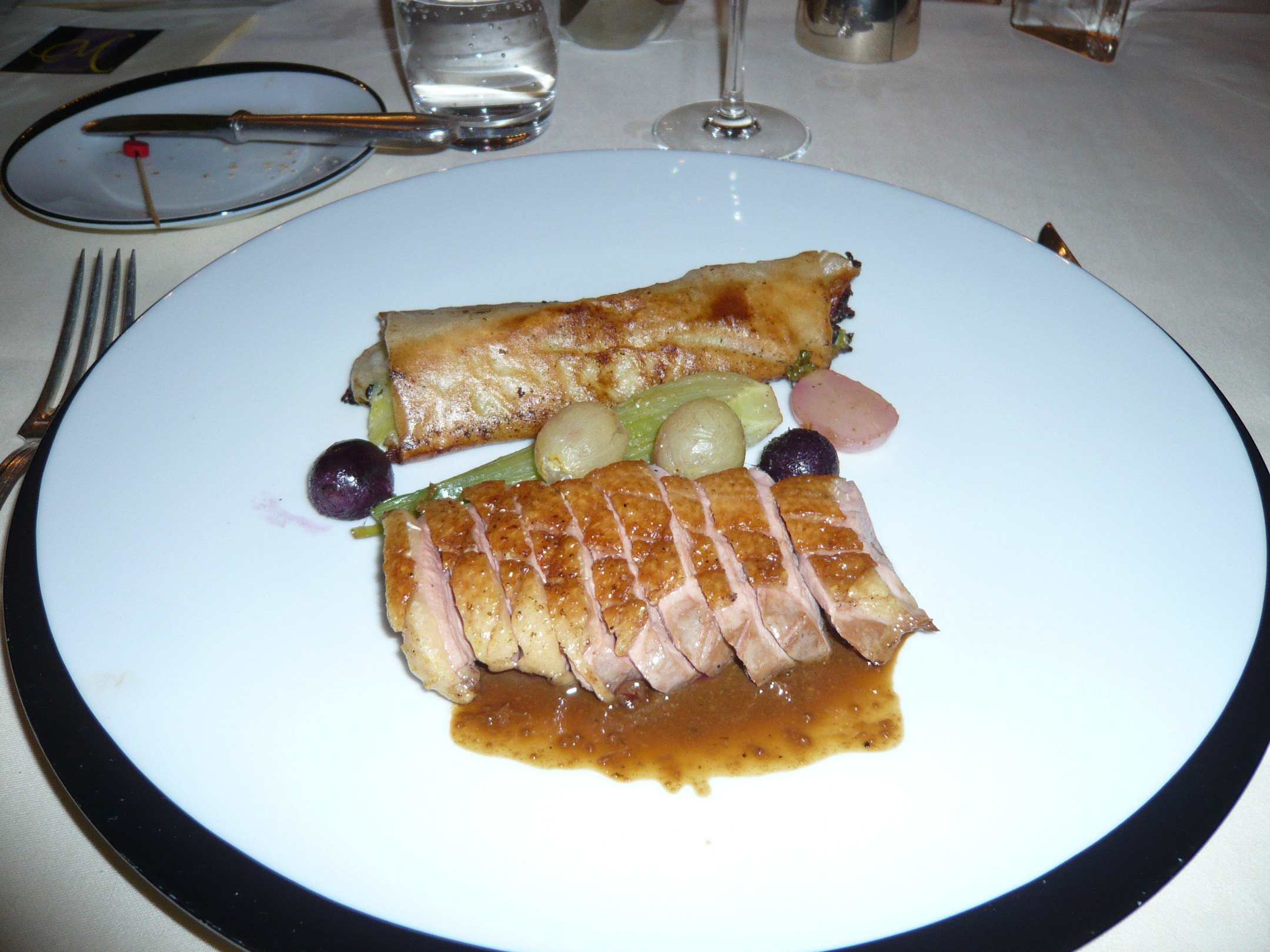Entenbrust mit Gemüse und Trauben