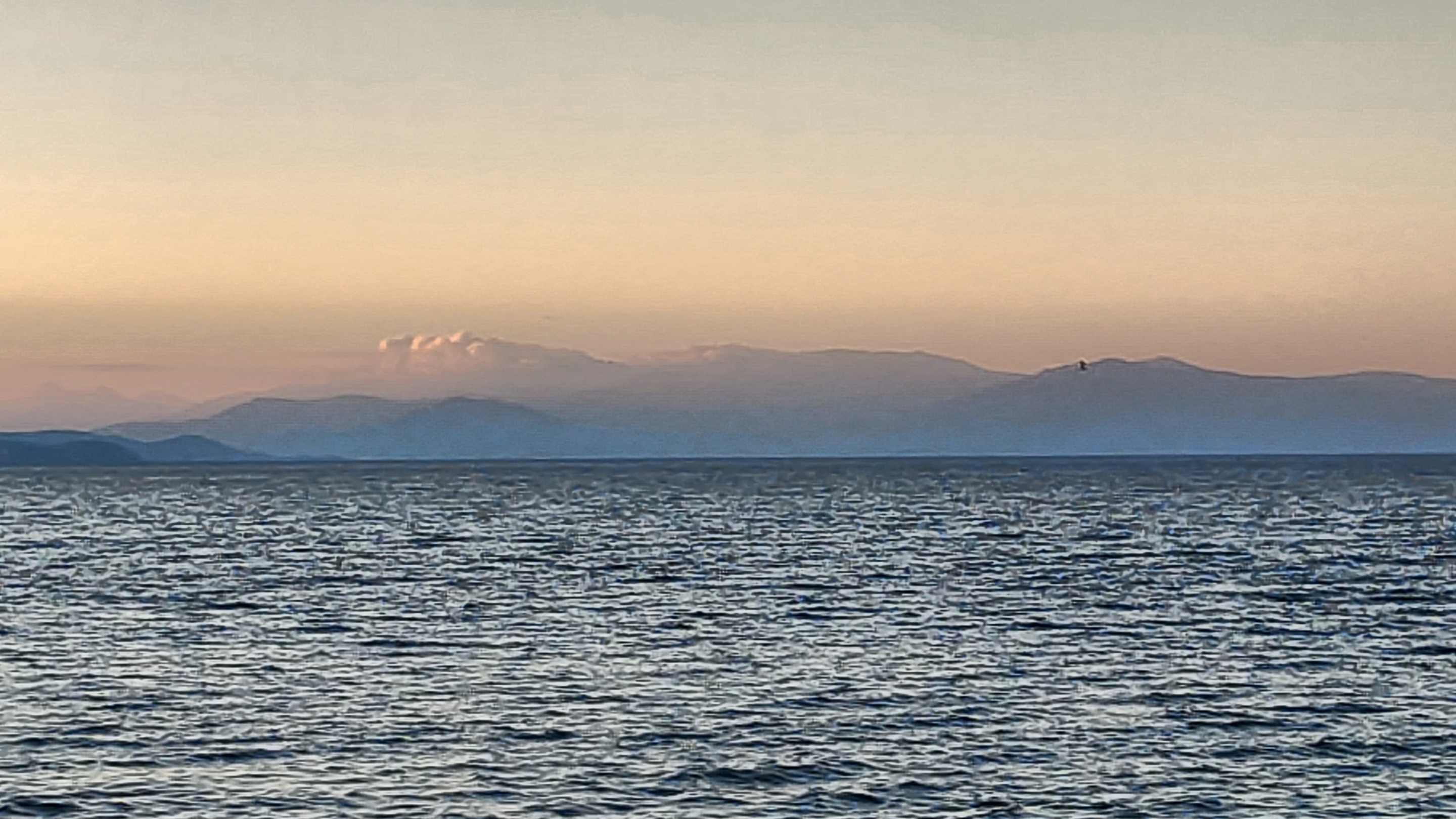 Ausblick vom Restaurant auf den See mit Abenddämmerung.