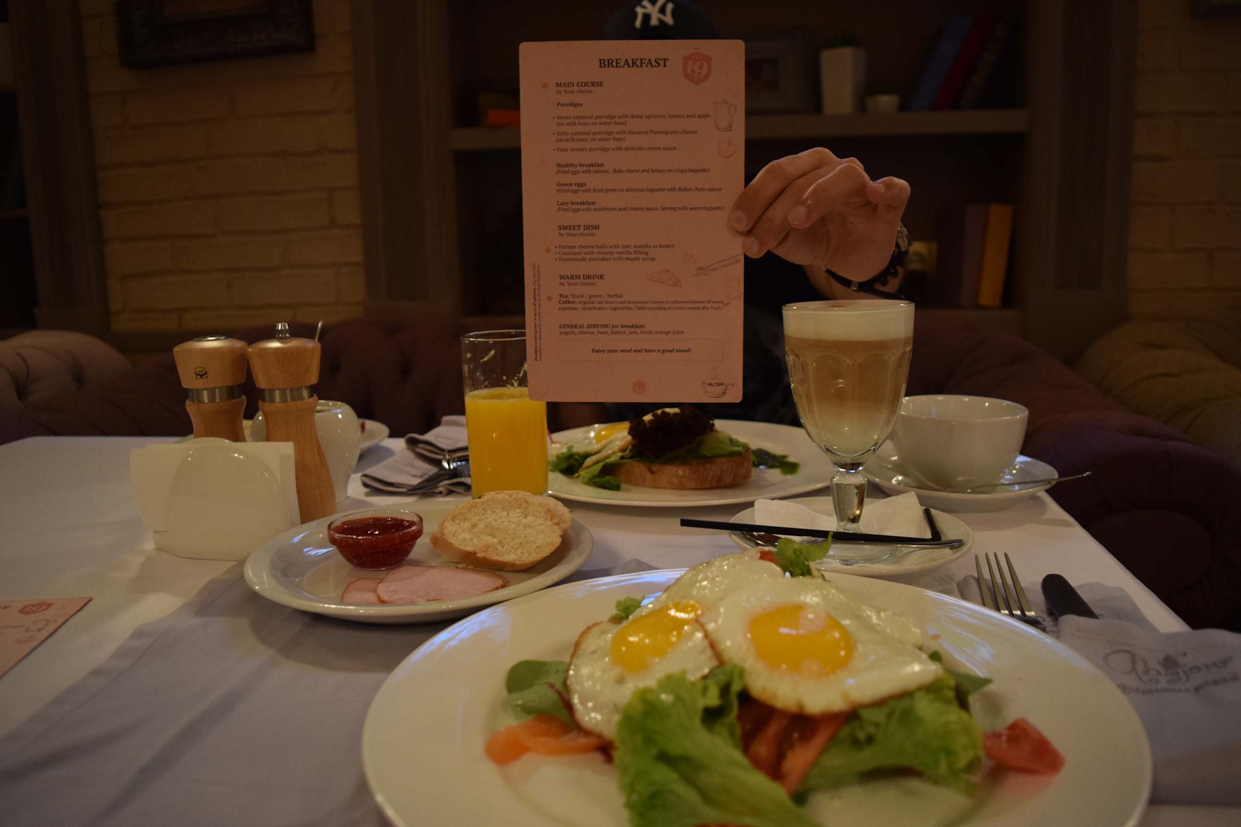 Frühstück (Teilansicht)Man konnte sich jeweils mehrere Gerichte aus einer großen Karte zusammenstellen.