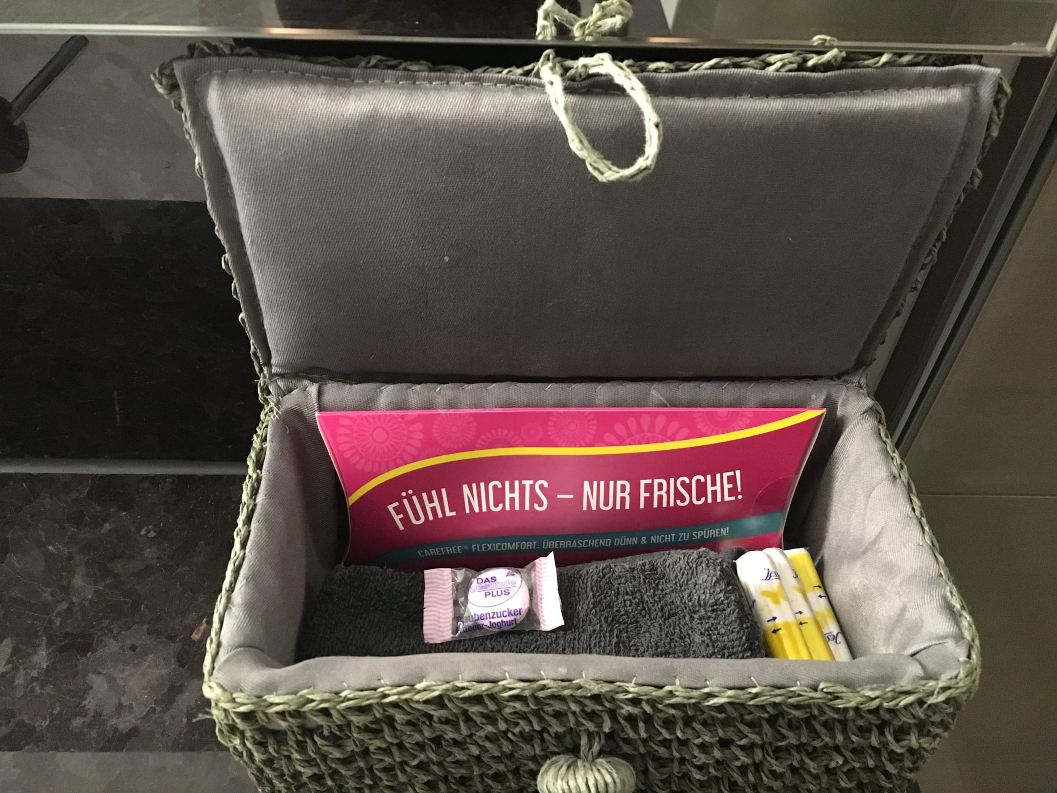 Aufmerksamkeit des Hotels: Utensilien für Damen im Bad.
