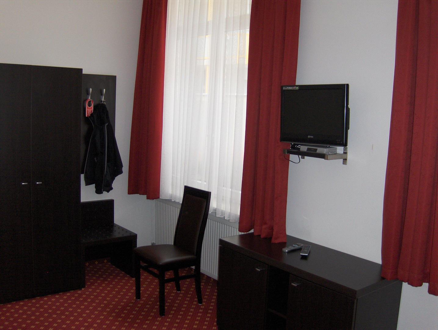 Blick richtung Schrank, Fernseher und Komode