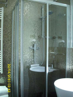 DIe moderne Dusche, im kleinen, aber sehr schönen Badezimmer.