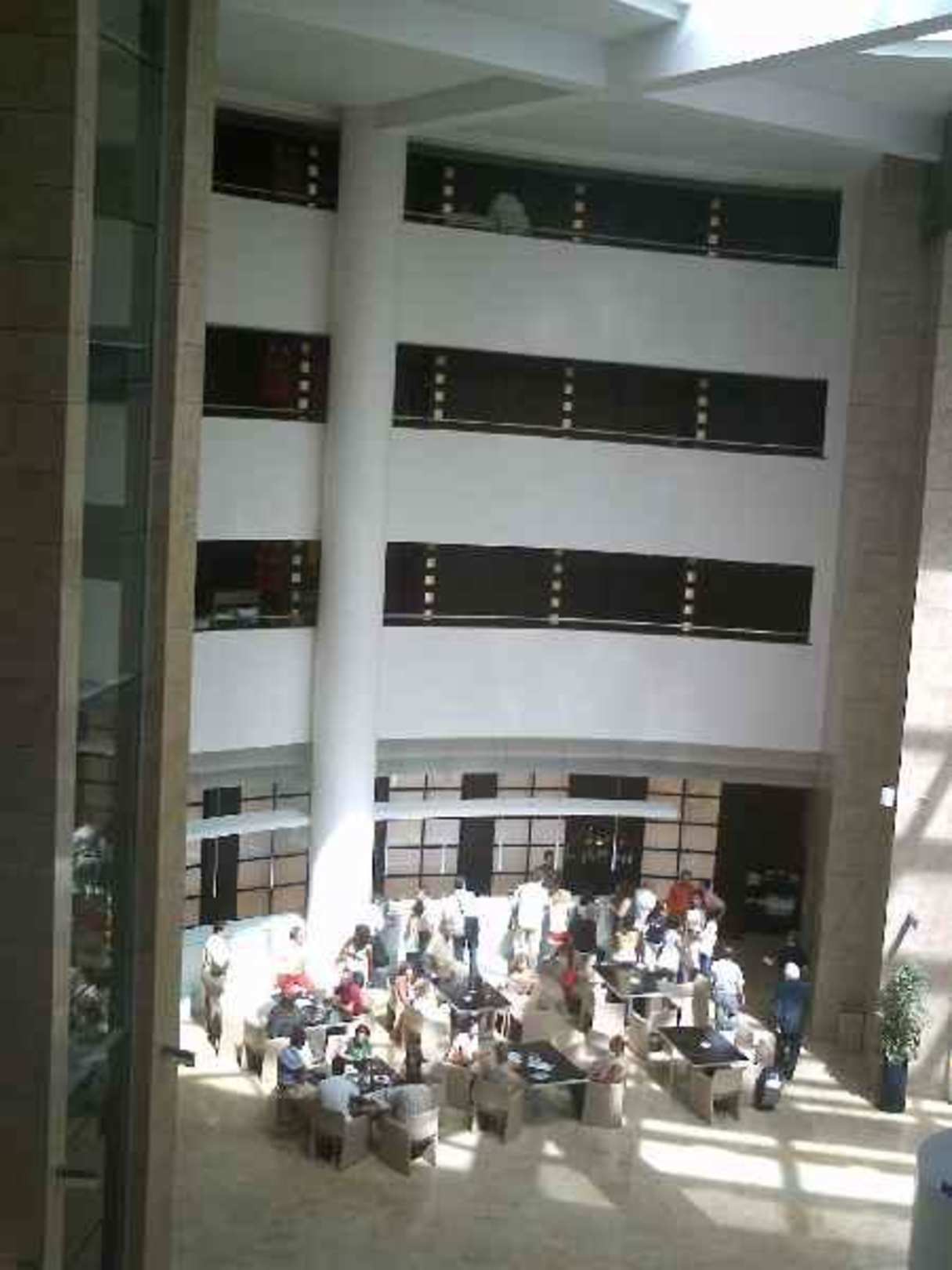 Blick von Gallerie auf Hotelbar in Lobby