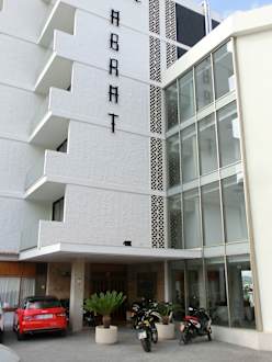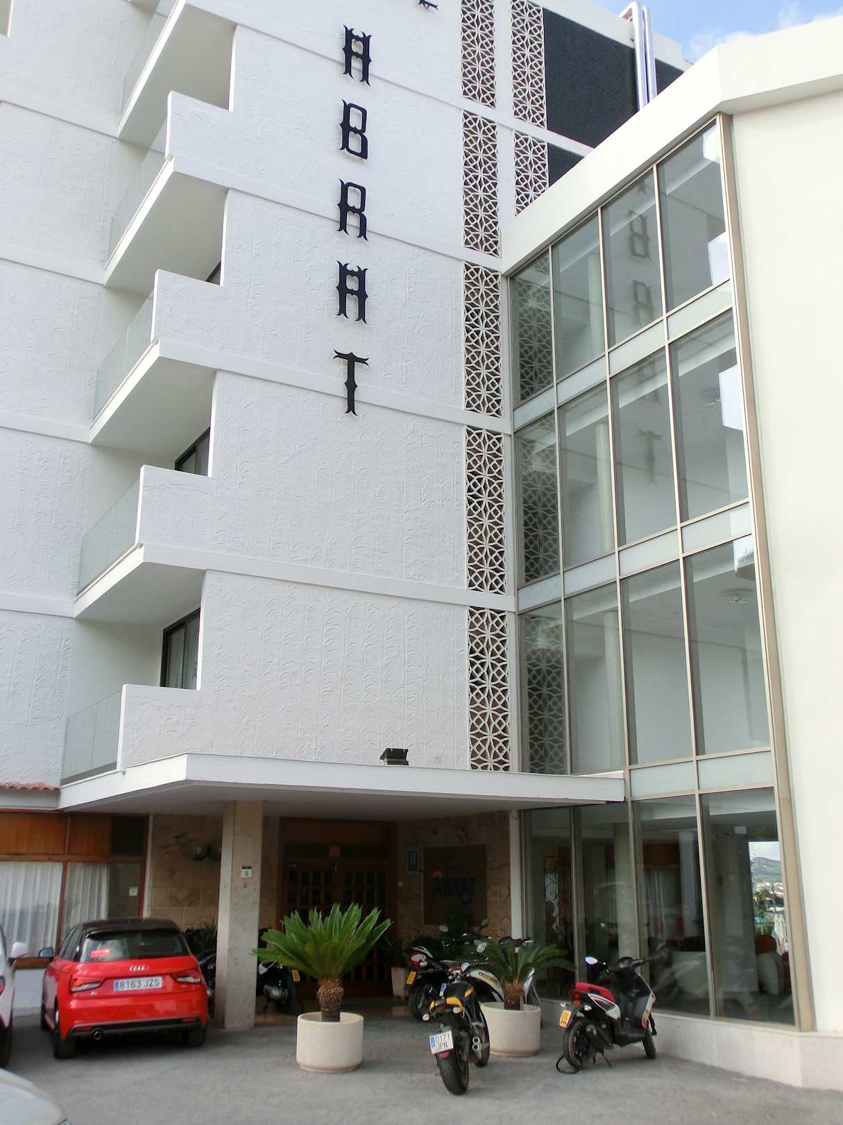 AußenansichtLeider ist der Haupteingang mit Blumenkübeln oder ständig mit Mofas zugestellt. Unverständlich!?