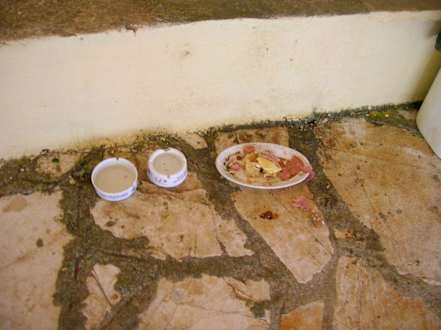 Futterstelle für Katzen an der Bachbar