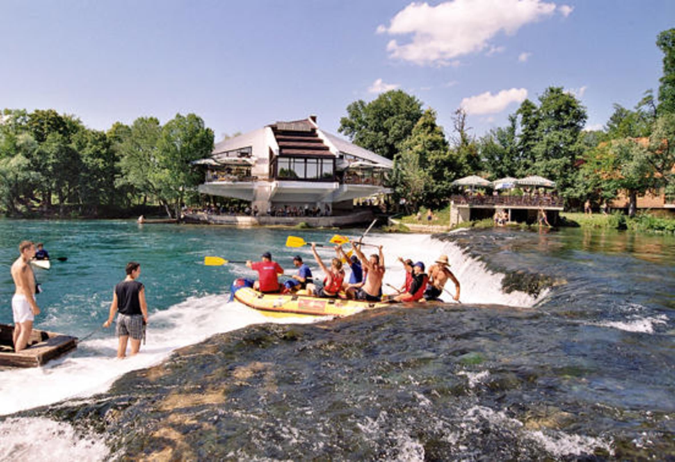 Direkt am Hotel kann man ins Wasser steigen, ob Schwimmen oder Boot fahren, es wird nicht zu heiss! Auf der Terrasse bekommt man kühle Getränke und Sandwiches.